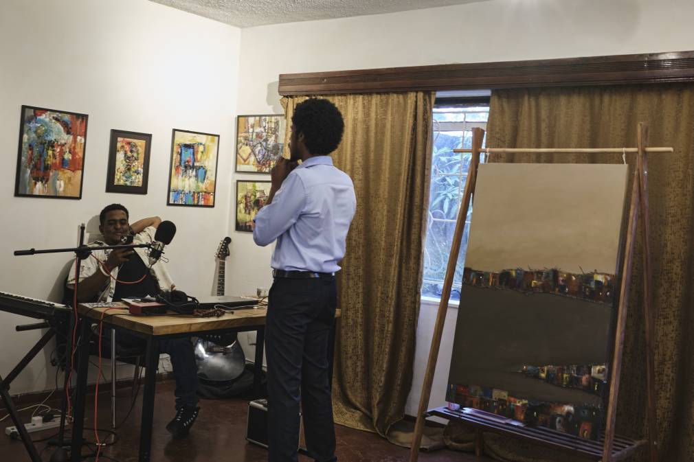Finalement, Ibrahim va entamer un exode de plusieurs milliers de kilomètres. Pour la ville de Gedaref d’abord, à l’est du pays, avant de traverser la frontière pour rejoindre l’Éthiopie, puis Nairobi au Kenya. Tous les membres d’Aswat Almadina se sont eux aussi dispersés : “certains sont aujourd’hui en Égypte, d’autres ont fui aux Émirats arabes unis” explique Ibrahim. Lui a été le dernier à partir, emportant uniquement quelques vêtements, un sac à dos, un ordinateur transportable et sa précieuse carte son, objects d’une autre vie, qu’il preserve aujourd’hui encore dans sa maison de Nairobi.