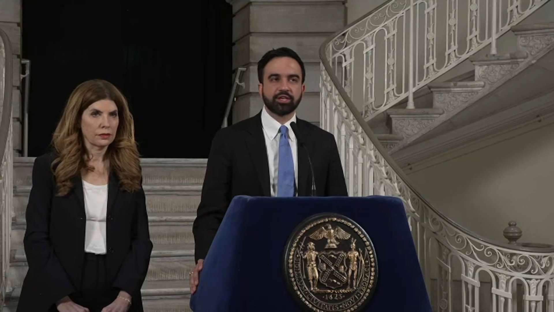 Mamdani and Menin appeared Tuesday within the Metropolis Corridor rotunda to announce a brand new settlement to foyer for a $1 billion tax rollback and extra State assist.