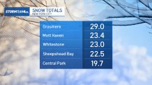 This is a take a look at snow totals from round New York, New Jersey, and Connecticut (up to date as of three p.m. Monday):